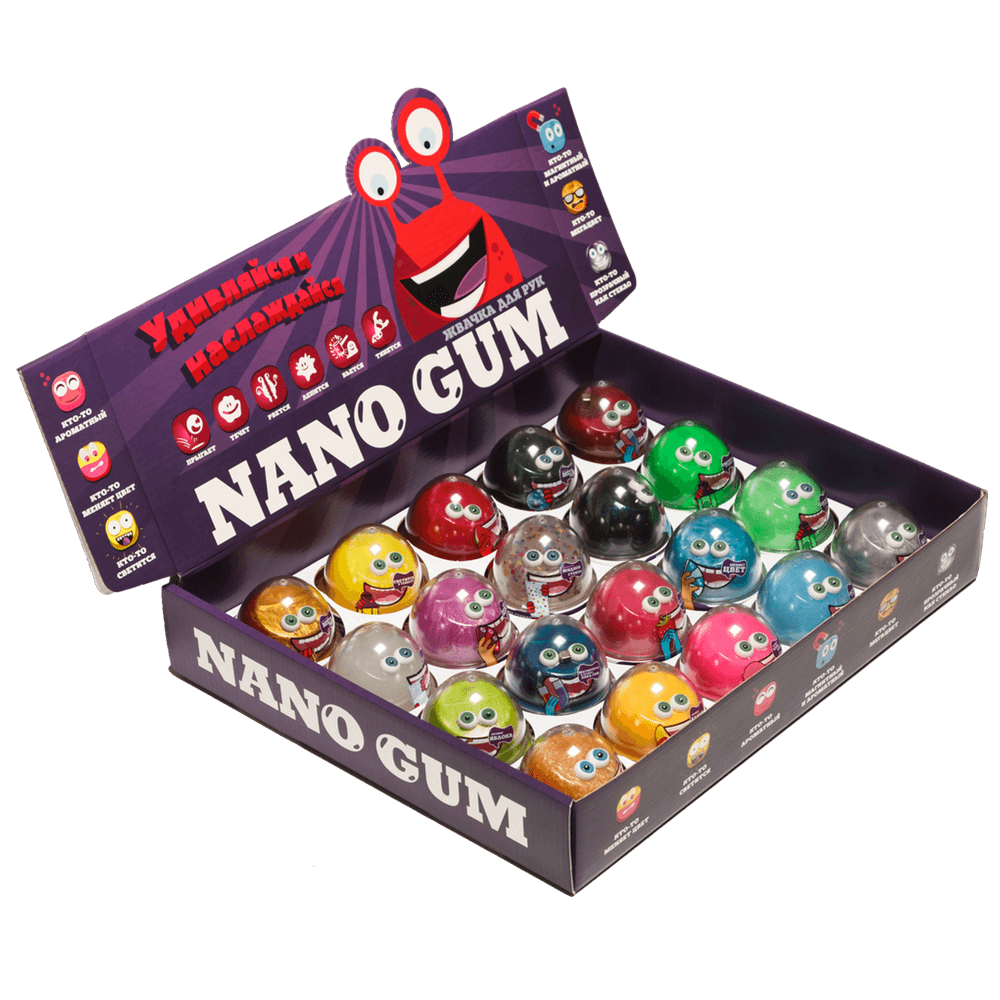 А металлическое мерцание золота будет при этом напоминать вам, что найдены еще далеко не все сокровища. Жвачка NanoGum с эффектом серебра или искрящегося алмаза позволит оживить мистические истории о боге Тоци и столице Ацтеков. Если же вы любитель современности, то по достоинству оцените NanoGum с эффектом голографии, который, кстати, очень вкусно пахнет грейпфрутом.