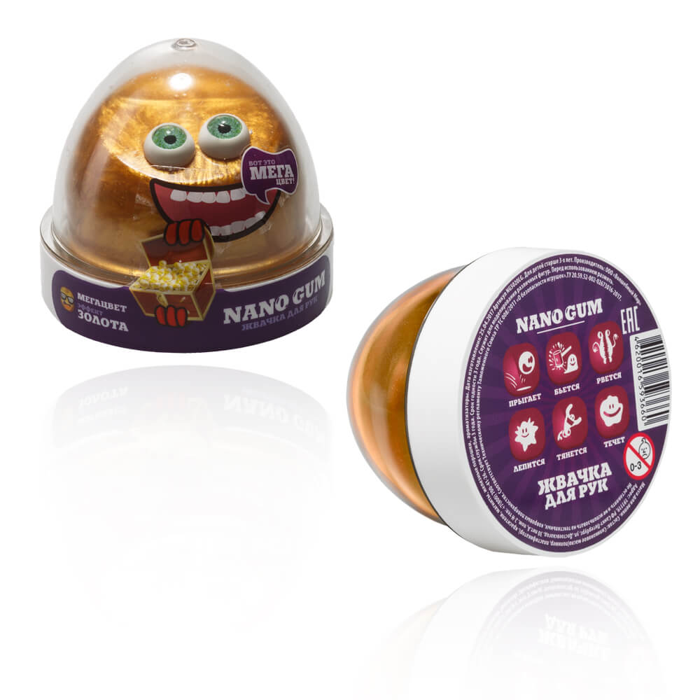 Эта 25-граммовая капсула NanoGum напоминает небольшой слиток золота, который к тому же можно растягивать, мять и даже рвать! Он сочетает в себе удивительные свойства жвачки для рук и чарующий золотой блеск, поэтому с ним вы легко сможете создать свои собственные неповторимые сокровища. Интересно будет не только детям, но и взрослым!