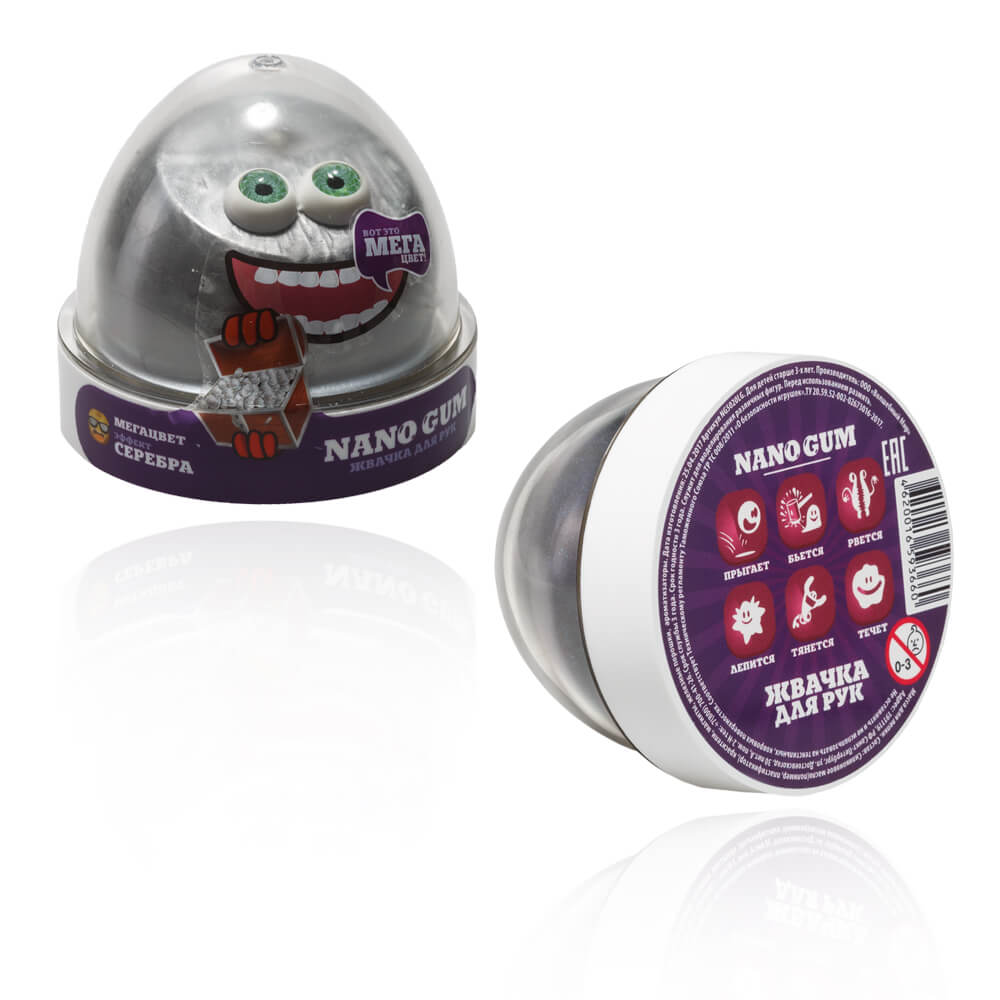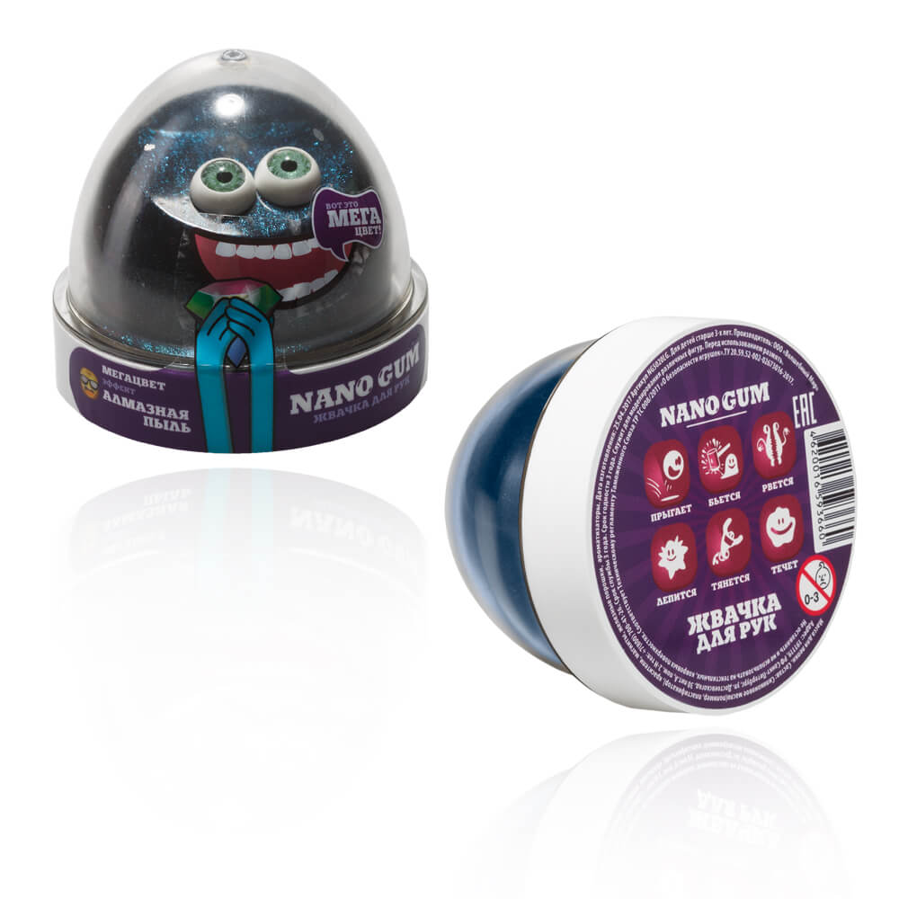 50-граммовая капсула жвачки для рук NanoGum с эффектом алмазной пыли действительно завораживает. Эта жвачка для рук твердая и жидкая, тянущаяся и рвущаяся одновременно! А еще она чарующе блестит и отлично отвлекает от будничных забот.